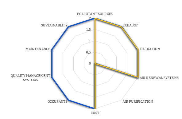 We have previously indicated that this type of analysis requires a transversal (holistic) approach, since all these criteria are interconnected and influence each other. In order to determine the relevance of taking into account the IAQ of a building, we propose to carry out a two-step approach: