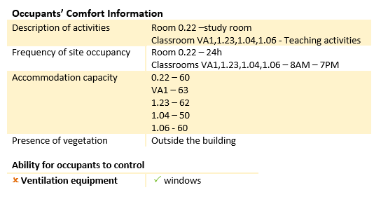 Classroom 1.23 – 10 m²Rooms VA1 and 1.06 – do not have windows to the outdoor;